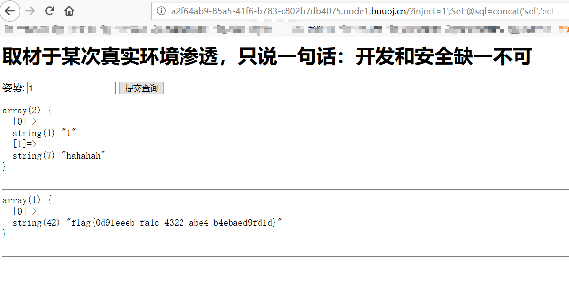 1 | set @sql=concat('sel','ect * from `1919810931114514`'); |