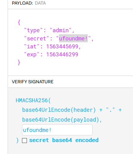可以猜测type这里需要我们修改成admin,同时secret为敏感信息,猜测这是需要hash验证的密码。
