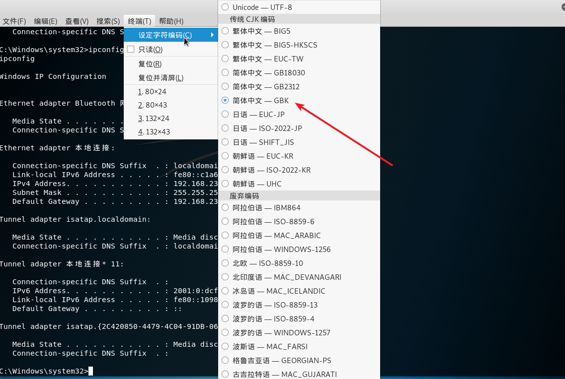 在kali下shell中回显的中文出现乱码,参考网上解决方法如下: