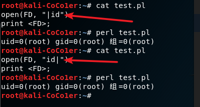 perl在open中可以执行命令,格式有两种:
